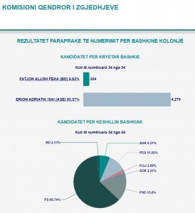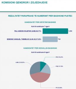 KQZ ka publikuar sot në mëngjes, rezultatet e përditësuara të numërimit në 61 bashki për kryetarë dhe këshilltarë bashkiakë si më poshtë vijon: