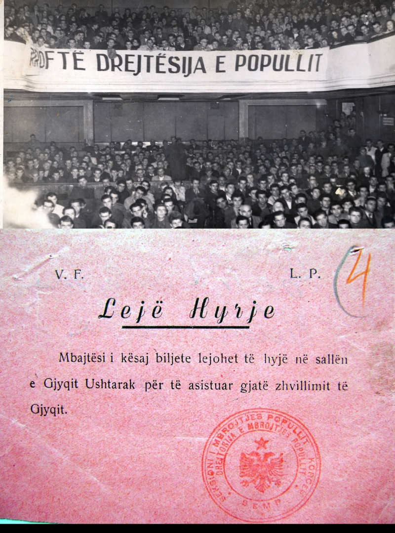 Drejtoria e Mbrojtjes së Popullit në varësi të Ministrisë së Mbrojtjes ishte strukturë që funksionoi në vitet 1944-1946 sipas modelit të OZN-as jugosllave. Ishte shërbimi i parë sekret komunist. Nuk duhet ngatërruar me Divizionin e Mbrojtjes së Popullit, siç nuk e kuptojnë as sot injorantë që kryejnë funksione shtetërore. Drejtoria e Mbrojtjes së Popullit organizonte gjyqet publike kundër kundërshtarë të regjimit komunist. Për çdo rast, ata kishin një model ftese që ia jepnin njerëzve të besuar që luanin rol kryesor në proceset gjyqësor sepse gërthisnin nga salla kundër “armiqve të popullit”. Siç shikohet, këto leje ishin pa emra. Me të tillë letra ata ishte “shikuesit” e popullit që kërkonin “drejtësi popullore”.