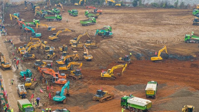 Spitali i ri është duke u ndërtuar rreth një kompleksi turistik. Aty po punojnë 35 eskavatorë dhe sipas zyrtarëve, spitali do të ndërtohet në modelin e ndërtimit të spitalit Xiaotangshan, të ndërtuar në Pekin.