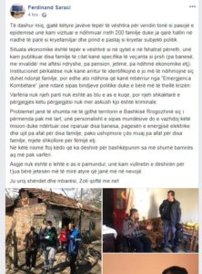 Të dashur miq, gjatë këtyre javëve tepër të vështira për vendin tonë si pasojë e epidemisë unë kam vizituar e ndihmuar rreth 200 familje duke ja qarë hallin në rradhë të parë si kryefamiljar dhe prind e pastaj si kryetar subjekti politik.