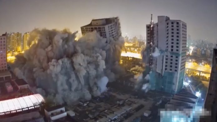 Katër ndërtesa 20-vjeçare të ndërtuara pjesërisht në qendër të qytetit të Shangait janë shembur njëkohësisht, duke shkaktuar një tërmet me magnitudë 1.7. Kjo zonë do të shndërrohet në një kompleks urbanistik në të ardhmen.