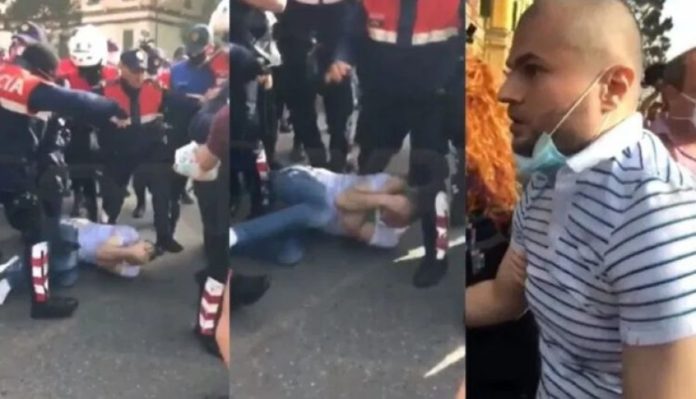 Siç shihet qartë edhe në fotot e mëposhtme policia ka go ditur një djalë, i cili shfaqet i shtrirë në tokë. Madje në një moment policët e që llojnë me shkelma të riun. Ky i fundit vë duart në kokë.