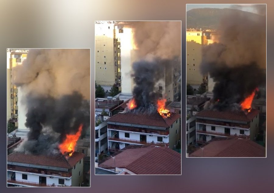 Një banesë disakatëshe mori flakë në zonën e Komunës së Parisit në Tiranë. Këto pamje tregojnë momentet kur flakët përpijnë çatinë e banesës.