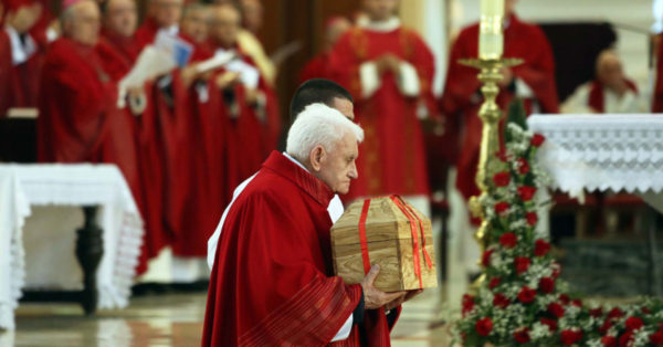 Ernest Simoni Troshani (në mes) në Vatikan në nëntor 2016 pasi u emërua kardinal. Foto: EPA/MAURIZIO BRAMBATTI.