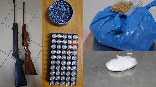 Ndërsa në bashkëpunim me Drejtorinë Vendore të Policisë Elbasan, gjatë kontrollit në banesën e këtyre shtetasve u gjetën dhe u sekuestruan në cilësinë e provës materiale 2 armë zjarri pushkë, dy dokumente të dyshuara të falsifikuara dhe një sasi lënde narkotike kanabis. Materialet iu referuan Prokurorisë së Rrethit Gjyqësor Tiranë, për hetime të mëtejshme.