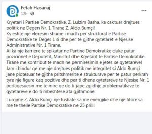 Fetah Hasanaj kryetari i deges nr.1 te PD Tirane