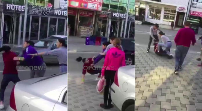 Vajzat po përleshen fizikisht me njëra-tjetrën, në mes të rrugës. Një vajzë tjetër dhe dy djem ndërhyjnë po ashtu dhe e qëllojnë “viktimën” me grushte dhe shkelma.