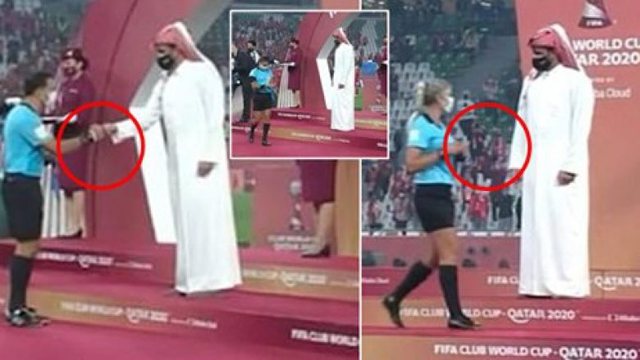 Sheiku Joaan bin Hamad Al Thani u filmua duke shtrënguar duart me një arbitër, pas fitores së Bayern Munich kundër Tigres UANL në finalen e Club Ëorld Cup, që është mbajtur në Katar.