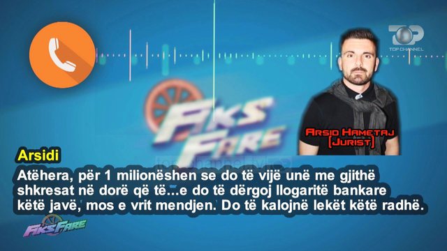 Fiks Fare kontaktoi në telefon edhe me Arsid Hametaj. Ai pranon që ja ka marrë lekët zonjës dhe do t’ja kthejë, por thotë që i qëndron deklarimit që ka dhënë në polici që i ka marrë për arsye shëndetësore, borxh. Ai thotë se këtë çështje do ta zgjidhi gjykata, pasi nuk i intereson shumë për regjistrimin që ka bërë apo ka zonja.