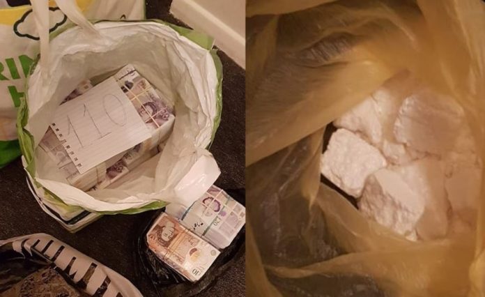 Policia speciale bastisi shtëpinë në Claremont Road, Brent Cross, në veriperëndim të Londrës ku kapën mbi 100 mbështjellëse të kokainës, peshore dhe sende të tjera të tregtimit të drogës, së bashku me 60,000 £ të dyshuara se vijnë nga aktivitete kriminal