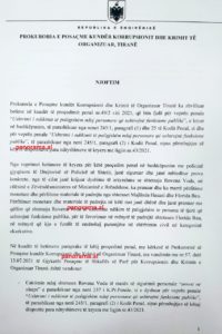 “Prokuroria e Posaçme kundër Korrupsionit dhe Krimit të Organizuar Tiranë ka zhvilluar hetime në kuadër të procedimit penal që bën fjalë për veprën penale “Ushtrim i ndikimit të paligjshëm ndaj personave që ushtrojnë funksione publike”, e kryer në bashkëpunim, si dhe për veprën penale “Ushtrim i ndikimit të paligjshëm ndaj personave që ushtrojnë funksione publike”.
