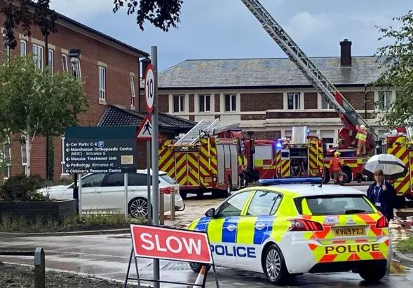 Sipas “Thye Sun” një repart u evakuua ndërsa tymi lëshohej nga çatia e Spitalit të Përgjithshëm Trafford të Mançesterit këtë pasdite.