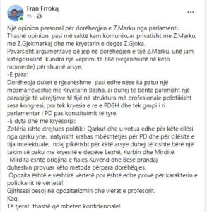 Dorëheqja e Mark Markut, reagon ish kryebashkiaku Fran Frrokaj: Dy arsyje pse jam kundra