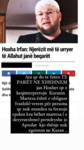 Këngëtarja theksoi se hoxhallarët që bëjnë “keqinterpretime të tilla të fesë islame, do jenë të parët që do shkojnë në xhehnem”, duke theksuar “se iu janë përzier kabullat e fanatizmit dhe injorancës”.