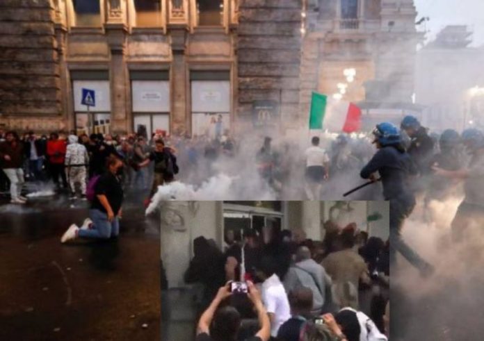 Sipas mediave italiane policia u rreshtua me mjete të trazirave për të kontrolluar protestuesit, të cilët mbështeten nga grupet ekstreme të ekstremit të djathtë.