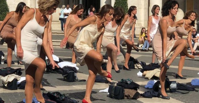 Ato kanë zhvilluar një protestë ndryshe duke dalë në rrugë, pranë njëra tjetrës dhe duke hedhur uniformën në tokë. Kjo pasi ato refuzojnë shitjen e kompanisë Alitalia tek kompania tjetër “Ita Airways”. Heqja e uniformave ishte simbol i refuzimit të situatës në të cilën ndodheshin, teksa bërtisnin në kor: “Ne jemi Alitalia”.“Ne erdhëm të shprehim dhimbjen tonë para së gjithash, solidariteti shkon për të gjithë kolegët tanë që janë detyruar të nënshkruajnë një kontratë me një kompani poshtuere dhe dëshpëruese,” thanë ato.