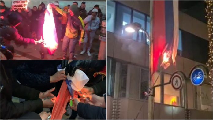 Gjatë protestave, disa persona kanë marrë flamurin serb të vendosur në një prej shtyllave përgjatë bulevardit “Dëshmorët e Kombit”, dhe e kanë djegur.