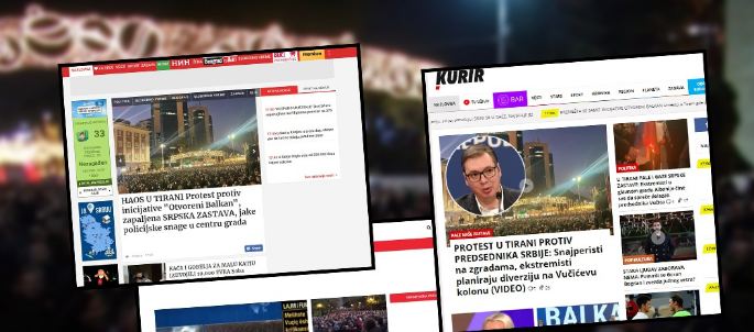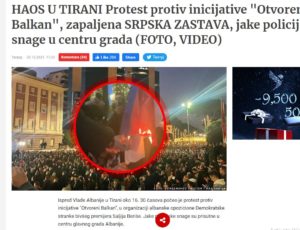 Protesta e zhvilluar pasditen e sotme në Tiranë kundër paktit Rama-Vuçiç për Ballkanin e Hapur ka marrë vëmendjen e mediave serbe.
