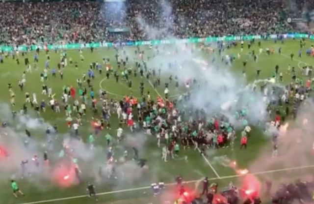 Ata i ndoqën lojtarët deri në hyrjen e tunelit për të dhomat e zhveshjes ndërsa situata u bë kaotike pas disa minutash. Nuk raportohet për lojtarë të lënduar por pamjet janë vërtet të frikshme.
