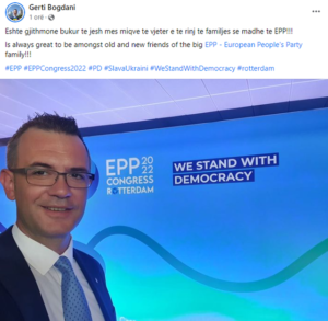 “Eshte gjithmone bukur te jesh mes miqve te vjeter e te rinj te familjes se madhe te EPP!!!”-shkruan Bogdani.