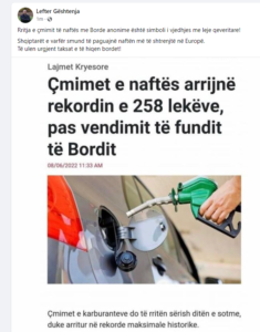 HomeEkonomiNafta 258 lekë, reagon Lefter Geshtenja: Simboli i vjedhjes me leje qeveritare!... EkonomiKryesore Nafta 258 lekë, reagon Lefter Geshtenja: Simboli i vjedhjes me leje qeveritare! Të ulen urgjent taksat e të hiqen bordet! 8 Qershor, 2022 Share FacebookTwitterPinterestWhatsApp Advertisment Rritja e çmimit të naftës me Borde anonime është simboli i vjedhjes me leje qeveritare! Shqiptarët e varfër smund të paguajnë naftën më të shtrenjtë në Europë. Të ulen urgjent taksat e të hiqen bordet! Advertisment Share FacebookTwitterPinterestWhatsApp Previous articleKush është vajza e ekranit shqiptar që ka shkuar në Dubai me anëtarin e bandës kriminale për 70 mijë euro në këmbim të marrëdhënieve se**uale? Gazetari tregon dy historitë pikanteNext articleEmerohet kryediplomatja e re e BE-së në Tiranë. Ka qenë ish-ambasadore e Gjermanisë në… RELATED ARTICLES Kryesore 11 dhjetori përfundimtar/ Nga intervistat te votimi, si do të përcaktohet drejtuesi i ri i SPAK-ut 25 Nëntor, 2025 Kryesore Shërbimi sekret amerikan trajnon gardistët që mbrojnë zyrtarët e SPAK. SHBA: Ndihmojmë në mbrojtjen e atyre që na ndihmojnë të luftojmë krimin e korrupsionin 24 Nëntor, 2025 Kryesore Vizita e dy kryeprokurorëve në Belgjikë, fokusi tek antimafia dhe sekuestrimi i aseteve. Dumani: Kemi marrë kërcënime nga politika e krimi. Jemi të përgatitur... 24 Nëntor, 2025 - Advertisment - - Advertisment - Most Popular 11 dhjetori përfundimtar/ Nga intervistat te votimi, si do të përcaktohet drejtuesi i ri i SPAK-ut 25 Nëntor, 2025 “Nuk kalon më në Morinë!”- Milaim Zeka zbulon përplasjet me Olta Gixharin: Më kërcënoi! Lëvizjen nuk ma ka ndaluar as Serbia! S’kacafytem me femrat 25 Nëntor, 2025 Ministri Blendi Gonxhja: Urat monument kulture, kanë përballuar pa asnjë dëmtim motin e keq, pas ndërhyrjeve restauruese 25 Nëntor, 2025 ‘SHBA-të zhvillojnë bisedime sekrete me Rusinë dhe Ukrainën në Abu Dhabi’, Financial Times: Propozimi i ndryshuar është në tryezë 25 Nëntor, 2025 Load more