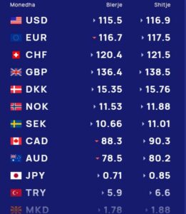Sakaq monedha evropiane vijon tw mbetet nw pozita tw dobwta. Ajo blihet me 116.7 lekë dhe shitet me 117.5 lekë.