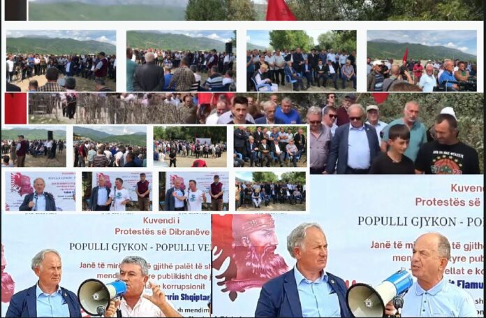 Kuvendi i Protestës së Dibranëve u mblodh sot Ura e Lushës në Fushë Alie të Dibrës për të ngritur zërin kundër dëbimit të 20 mijë banorëve nga fshatrat që do të përmbyten nga Skavica dhe të gati 16 mijë ha tokë