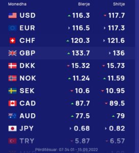 Ndërsa franga zvicerane blihet me 120.3 lekë dhe shitet 121.6.