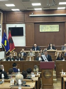 Dua te ndaj me ju nje falenderim te veçante dhe te perzemert per secilin anetar te kuvendit komunal te Prizrenit, per kryetarin e komunes se Prizrenit z. Shaqir Totaj, per kryesuesen e kuvendit znj. Antigona Bytyqi, per iniciuesin dhe propozuesin e emrit tim per qytetar nderi te Prizrenit z. Haziz Hodaj, kryetar i grupit te keshilltareve te LDK ne kuvendin komunal te Prizrenit, kryesuesin e keshilltareve te Levizjes Vetvendosja, te PDK, te AAK dhe perfaqesuesin e pakicave dhe minoriteteve ne kuvendin komunal te Prizrenit qe me vote unanime miratuan propozimin e z.Hazis Hodaj qe une te shpallem qytetar nderi i qytetit historik te Prizrenit. Ndihem i privilegjuar dhe i krenar per vleresimin qe nuk eshte vetem i imi por i çdo qytetari te Kukesit, Hasit, Tropojes dhe Shqiperise qe ne momentet me te veshtira per popullin e Kosoves bene detyren qe u takonte. Titullin e larte qe me dhate do ta mbaj me nder dhe do ta kujtoj gjithnje si nje nga momentet me te çmuara te jetes sime. Le te sherbeje ky moment si motiv per te menduar, punuar dhe sherbyer se bashku si ne vitet e veshtira qe kaluam. Faleminderit me mirenjohjen me te thelle Prizrenit dhe gjithe Kosoves.