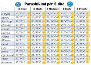 Moti për këtë javë pritet të jetë nën ndikimin e temperaturave përvëluese, por gjatë mes javës termometri do të shënojë rënie.