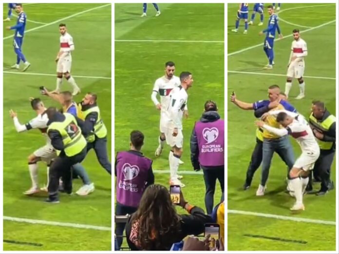 Përveç dopietës, kapiteni u vendos në shënjestrën e një tifozi, ndërsa ishte duke ekzekutuar goditjen e këndit. Pas shënimit të golit të katërt, i cili erdhi në minutën e 39-të të pjesës së parë, një individ pushtoi fushën dhe sulmoi Ronaldon. Stjuardët nuk patën kohë ta ndalonin tifozin që ka arritur të godasë kamionin portugez, që u shfaq duke fërkuar kyçin e këmbës së djathtë.