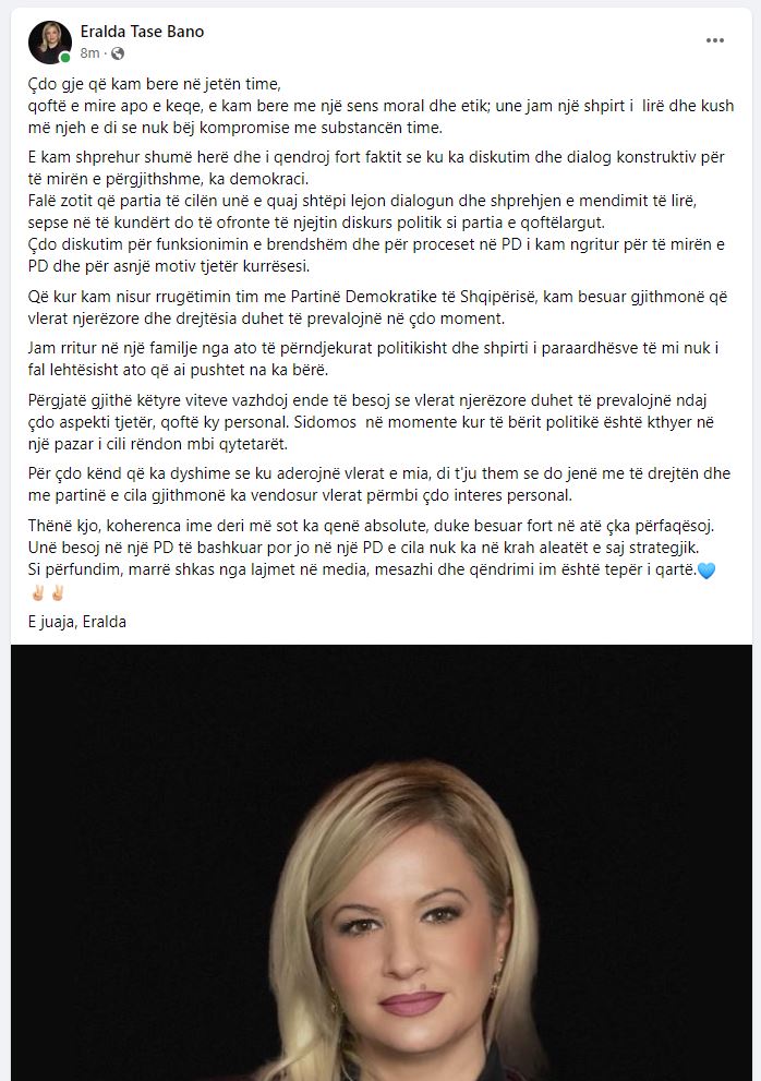 Dy deputetë ikin nga Basha?! Eralda Bano sqaron pozicionin e saj: Çdo gjë që kam bërë në jetën time….