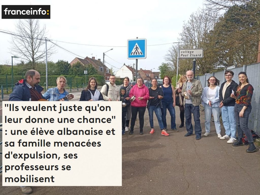 Një protestë e veçantë ka ndodhur në qytezën franceze të Roncq në veri të Francës. Një grup mësuesish të kolegjit “Paul Éluard” dhe shkollës “Neruda” dolën në mbështetje të një familjeje shqiptare e cila po detyrohet nga autoritetet të largohet nga territori francez. Liviana, 13 vjeç, vëllai i saj 8-vjeçar dhe dy prindërit e tyre u larguan nga Shqipëria në vitin 2022, në kërkim të kujdesit për babain dhe vëllain e Livianës, të cilët vuajnë nga sëmundje të rënda. Duket se që atëherë, ata kanë fituar respektin e komunitetit të zonës.