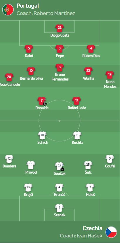 Ashtu siç pritej, në ndeshjen e sotme do të jetë titullar nga minuta e parë me shiritin e kapitenit Kristiano Ronaldo, i cili mendohet se do të luajë turneun e tij të fundit madhor dhe dëshiron që të përsëritë historinë si 8 vite më parë kur ngriti lart trofeun.