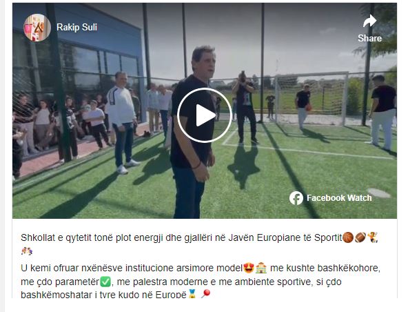 Shkollat e qytetit tonë plot energji dhe gjallëri në Javën Europiane të Sportit! U kemi ofruar nxënësve institucione arsimore model me kushte bashkëkohore, me çdo parametër, me palestra moderne e me ambiente sportive, si çdo bashkëmoshatar i tyre kudo në Europë