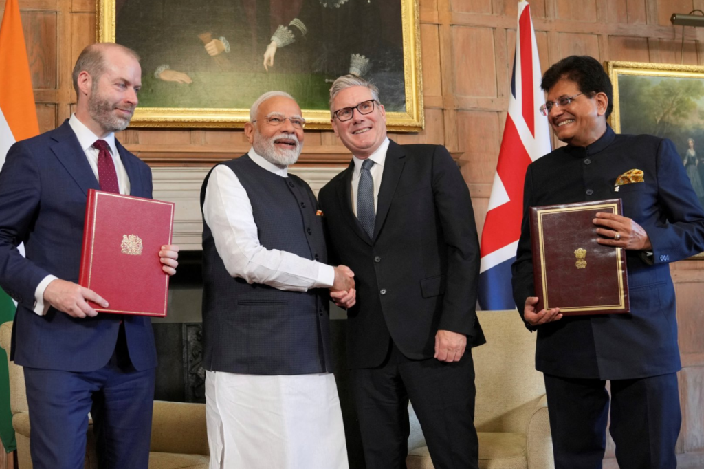 India dhe Britania e Madhe kanë nënshkruar një marrëveshje historike të tregtisë së lirë, e cila pritet të sjellë miliarda paund përfitime për të dyja vendet. Kryeministri indian Narendra Modi dhe homologu i tij britanik, Keir Starmer, firmosën paktin gjatë një ceremonie në rezidencën zyrtare të kryeministrit britanik në Chequers.