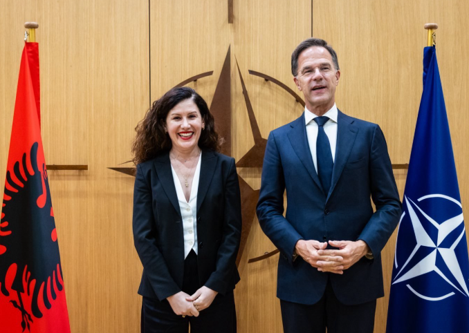 Gjatë vizitës, ajo u prit nga Sekretari i Përgjithshëm i Aleancës, Mark Rutte, në një takim ku u diskutua për sigurinë euroatlantike dhe sfidat e reja që lidhen me stabilitetin rajonal dhe global.