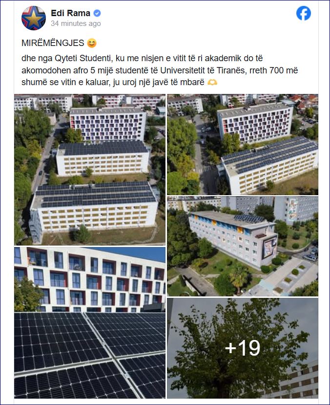 Përmes një postimi në rrjetet sociale, Rama shprehet se me nisjen e vitit të ri akademik, në këto godina do të akomodohen afro 5 mijë studentë, rreth 700 më shumë se vitin e kaluar.
