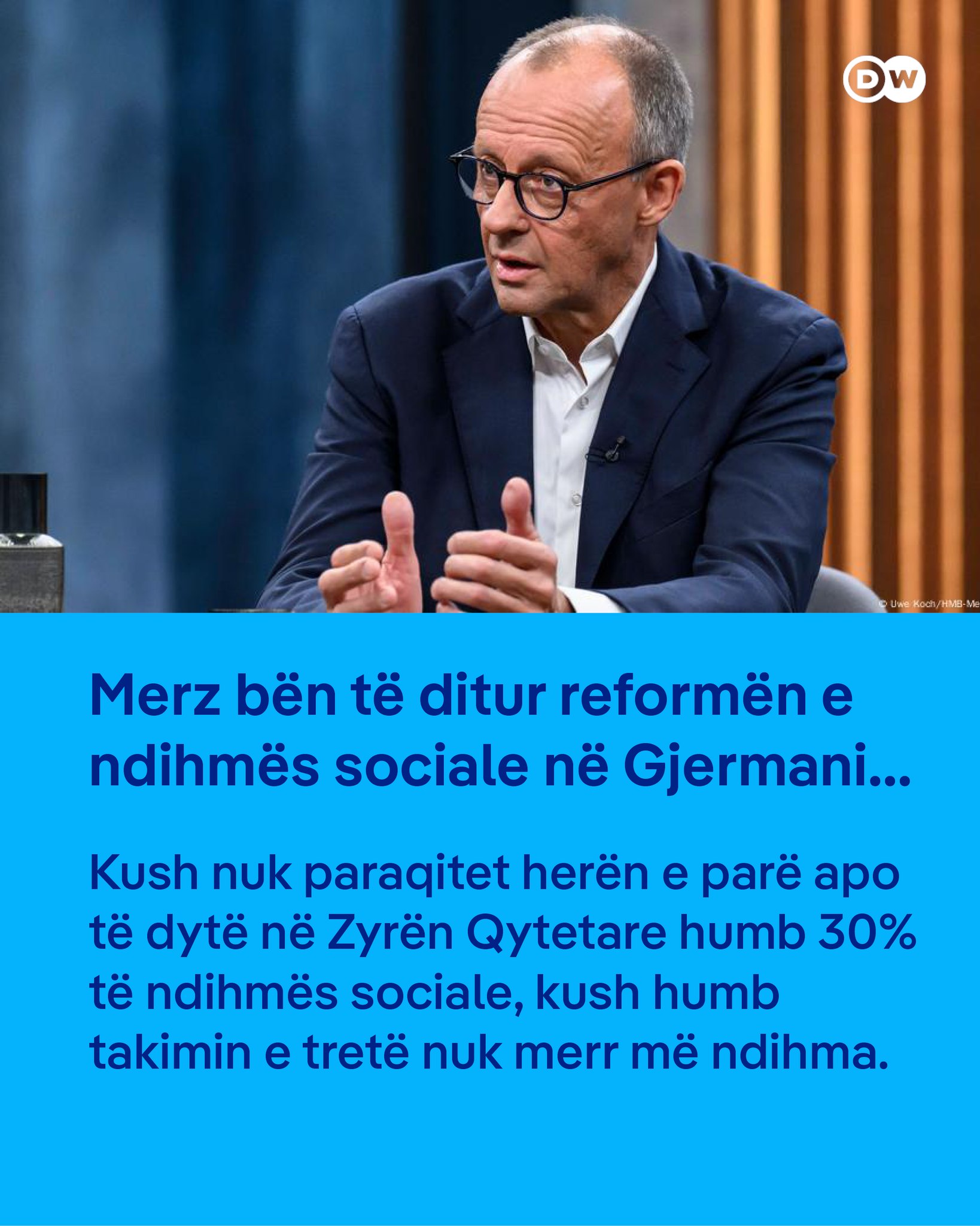 Krerët e koalicionit CDU/CSU-SPD kanë rënë dakord mbi pikat kryesore për reformën e planifikuar të ndihmës sociale (Bürgergeld) në një takim që u zhvillua gjatë natës. Në të ardhmen, do të jetë e mundur të anulohen të gjitha përfitimet, përfshirë pagesat e qirasë, për njerëzit që refuzojnë rregullisht të punësohen, tha kancelari Friedrich Merz (CDU) pas bisedimeve në komitetin e koalicionit të enjten në mëngjes në Berlin. Nëse dikush mungon në një takim të parë dhe të dytë në Zyrën Qytetarëve, norma standarde sociale do të ulet menjëherë me 30 përqind, tha Merz. Pas takimit të tretë të humbur, ajo do të vendoset në zero. Një e ashtuquajtur shkelje e detyrimit do të rezultojë menjëherë në një ulje prej 30 përqind të “Bürgergeld”. Refuzimi i një oferte pune, për shembull, konsiderohet shkelje e detyrës. Ministri i Çështjeve Sociale Bärbel Bas (SPD) tha se sanksionet do të shtrëngohen deri në kufirin e asaj që është e lejuar kushtetutshëm: “Ata që nuk bashkëpunojnë do ta kenë të vështirë”, tha ajo. DW