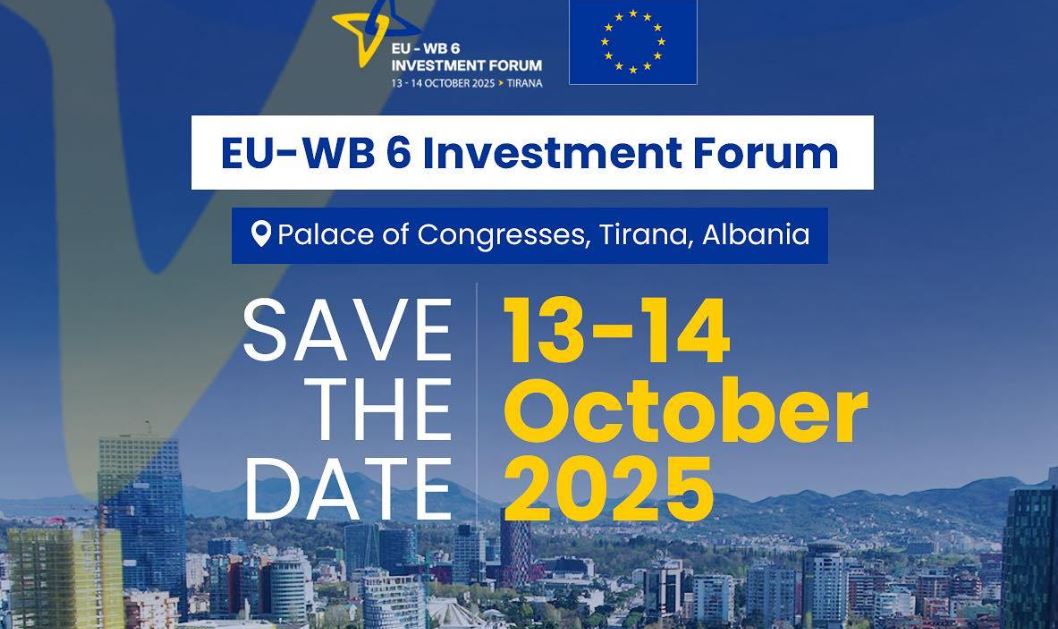 Tirana mirëpret më 13–14 tetor Forumin e parë të Investimeve EU–WB6 (Bashkimi Europian – Ballkani Perëndimor), një event i cili bashkon vendet e Ballkanit Perëndimor, vendimmarrësit e Bashkimit Europian dhe investitorë nga e gjithë bota.