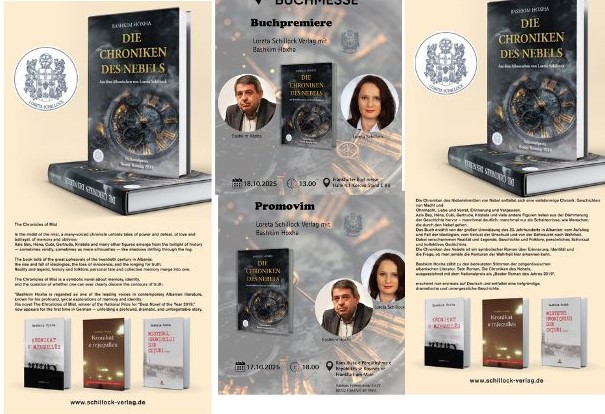 Romani “Kronikat e mjegullës”, i autorit Bashkim Hoxha. Një vepër sfiduese për nga zhanri dhe simbolika, e cila vjen bukur në gjuhën gjermane, duke ruajtur sa më shumë botëkuptimin origjinal, çka i jep mundësinë lexuesit të kultivuar gjerman që të njihet me një vepër të spikatur në letrat shqipe