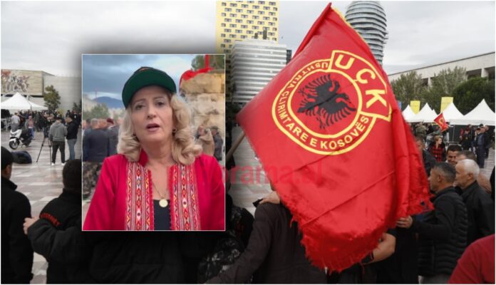 Këngëtarja e njohur kosovare Shkurte Fejza ishte e pranishme në protestën e sotme në mbështetje të luftëtarëve të UÇK-së në sheshin “Skënderbej”, në Tiranë.