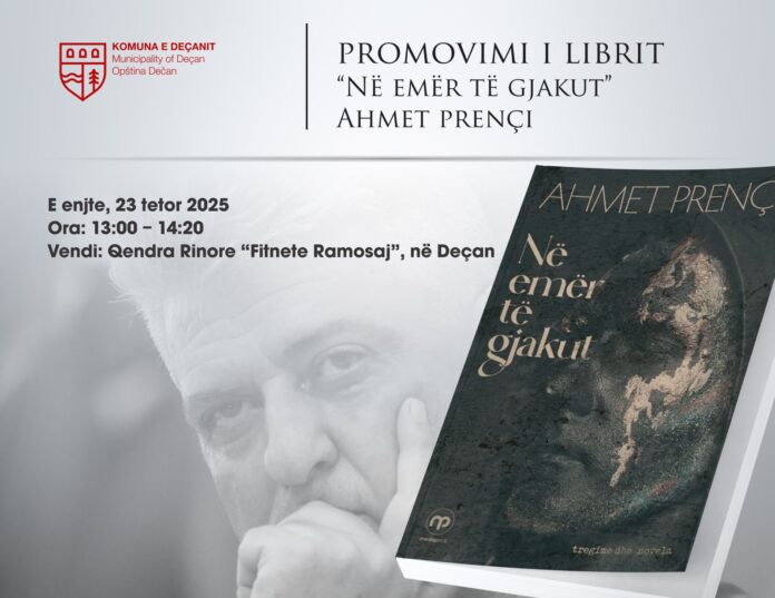 Botimet e shkrimtarit Ahmet Prençi vazhdojnë të njohin suksesin dhe matësi për të konfirmuar një gjë të tillë, është përqafimi nga ana e lexuesit e veprave të tij romaneve, por dhe vëllimit më tregime sjellë së fundmi të titulluar ”Në emër të gjakut”. Në vijim të takimeve dhe promovimeve, radha është në Kosovë, ku autori dhe kryetari i Komunës Bashkim Ramosaj konfirmojnë promovimin e këtij libri. “Një ngjarje e bukur për mua. Rast i çmuar për tu pare e takuar me miq e lexues. Faleminderit Komuna e Deçanit”- shkruan autori Ahmet Prençi në Facebook!