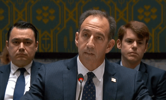 Përfaqësuesi dhe ambasadori i Shteteve të Bashkuara në Kombet e Bashkuara, Jeff Bartos, deklaroi sot në seancën e Këshillit të Sigurimit të OKB-së se ka ardhur koha që misioni i UNMIK-ut (Misioni i Kombeve të Bashkuara në Kosovë) të tërhiqet nga Kosova.