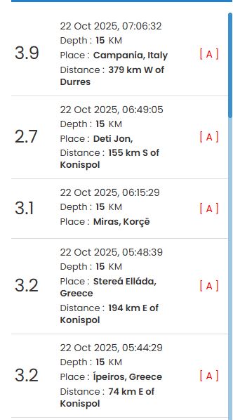 Një seri tërmetesh janë regjistruar në vendin tonë. Sipas të dhënave, tërmeti i parë është regjistruar në Durrës, me magnitudë 3.9.