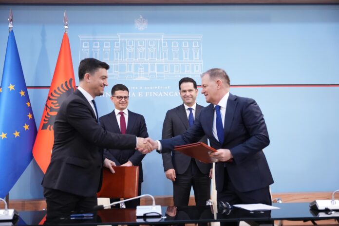 Në ambientet e Ministrisë së Financave, u nënshkrua sot marrëveshja e bashkëpunimit ndërmjet Drejtorisë së Përgjithshme të Doganave dhe Autoritetit të Kontrollit Shtetëror të Eksporteve. Marrëveshja u firmos nga Drejtori i Përgjithshëm i Doganave, Z. Genti Gazheli dhe Drejtori i AKSHE-së, Z. Andrea Shllaku, në prani të Ministrit të Financave, Petrit Malaj dhe Ministrit të Mbrojtjes, Pirro Vëngu.