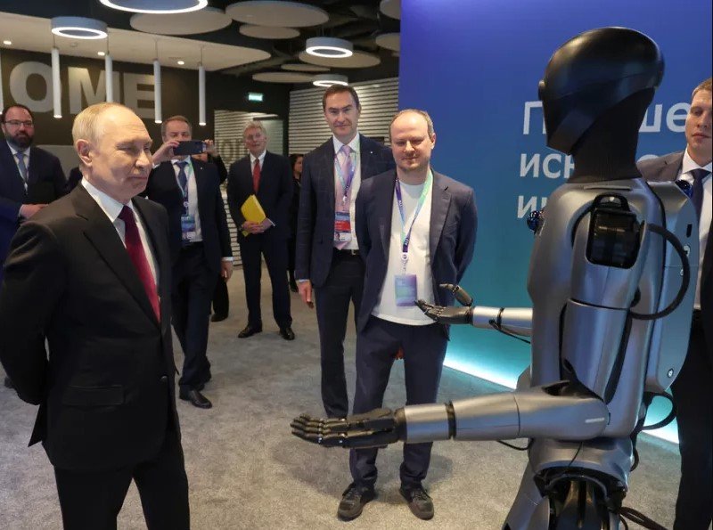 Një robot humanoid i pajisur me inteligjencë artificiale ka performuar një kërcim përpara presidentit rus Vladimir Putin, gjatë një ekspozite të organizuar nga Sberbank, banka më e madhe në Rusi, e cila kishte për qëllim të prezantonte risitë teknologjike të institucionit. Pamjet, të transmetuara në televizionin shtetëror, e shfaqnin Putinin përballë robotit, i cili fillimisht iu prezantua dhe më pas kërceu këngën e tij të preferuar.