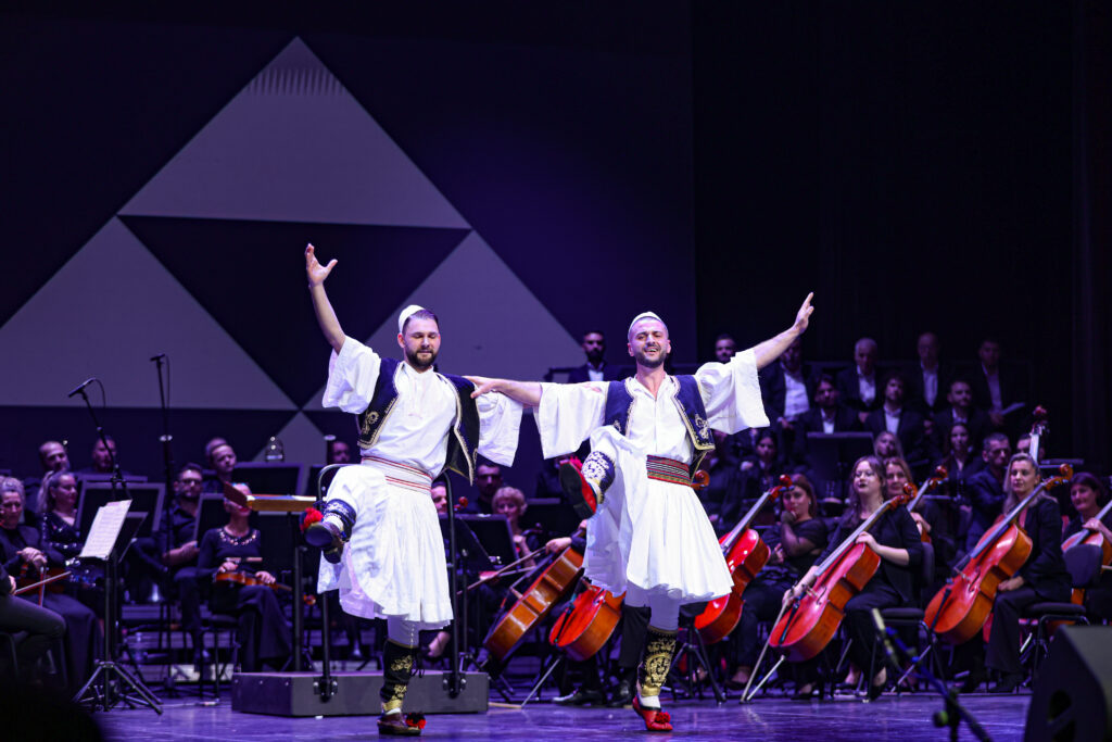 Programi artistik i mbrëmjes u konceptua si një udhëtim pa kohë mes të shkuarës, të tashmes dhe të ardhmes. Performuesit e mbrëmjes ishin sopranoja Marigona Qerkezi një nga zërat më të rëndësishëm të skenës ndërkombëtare operistike, baritoni i mirënjohur me famë botërore Gëzim Myshketa dhe violinisti virtuoz i njohur botërisht Olen Cesari të cilët performuan së bashku me Orkestrën Simfonike dhe Korin e Teatrit Kombëtar të Operës, Baletit dhe Ansamblit Popullor, nën drejtimin e maestros së mirënjohur Sergio Alapont. i njohur për interpretimet e tij të rafinuara dhe energjinë artistike që i jep jetë çdo performance. Ata sollën një program të përzgjedhur që ndërthurte mjeshtërisht traditën dhe modernen, me vepra nga kompozitorët shqiptarë Avni Mula, Pjetër Gaci, pjesë të njohura nga veprat e fuqishme operistike Tosca, Carmen dhe Maria Stuarda si edhe performanca elektrizuese në violinë nga muzika e filmit “Gladiatori” dhe “Tango Argjentine”. Udhëtimi në kohë u soll në skenë gjithashtu përmes një kolazhi vallesh tradicionale nga Ansambli Popullor dhe baleti kontemporan “Viceversa” nga balerinët e trupës së baletit të TKOBAP, me koreografi të Julind Dervishit si edhe një monolog nga artisti Indri Shiroka. Vizioni drejt së ardhmes u reflektua nëpërmjet një performance të balerinit të ri të talentuar Ergi Imeraj me koreografi të Donald Martinit. Të gjitha performancat u shoqëruan nga projeksione 360° që ofruan një përvojë të jashtëzakonshme shumë dimensionale për të ftuarit.