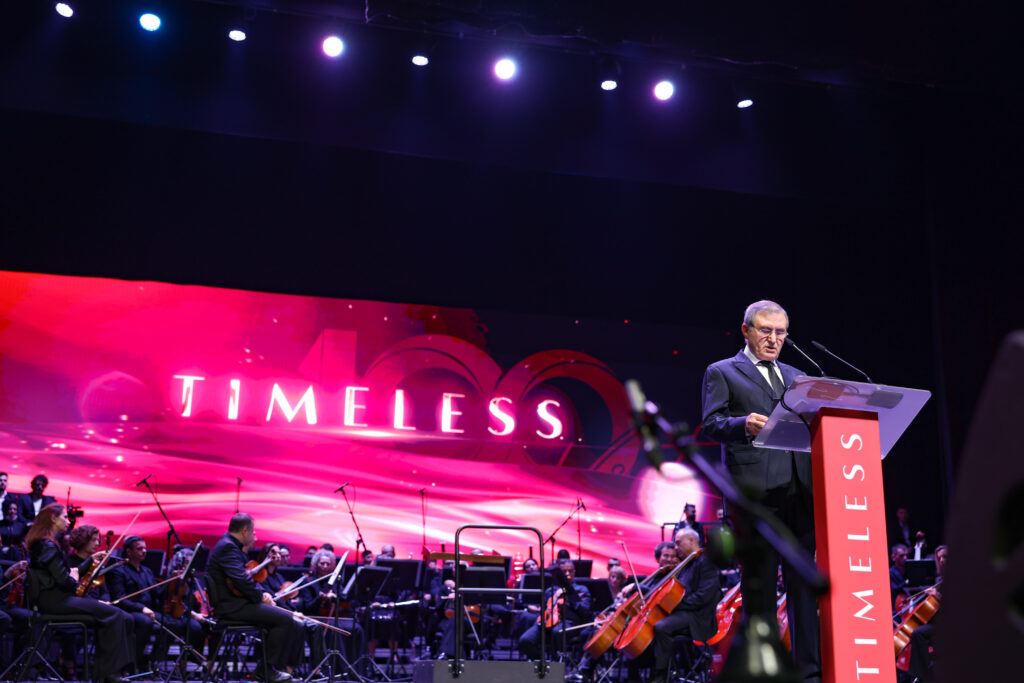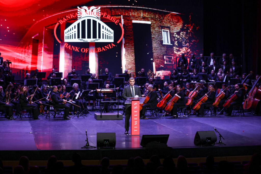 Programi artistik i mbrëmjes u konceptua si një udhëtim pa kohë mes të shkuarës, të tashmes dhe të ardhmes. Performuesit e mbrëmjes ishin sopranoja Marigona Qerkezi një nga zërat më të rëndësishëm të skenës ndërkombëtare operistike, baritoni i mirënjohur me famë botërore Gëzim Myshketa dhe violinisti virtuoz i njohur botërisht Olen Cesari të cilët performuan së bashku me Orkestrën Simfonike dhe Korin e Teatrit Kombëtar të Operës, Baletit dhe Ansamblit Popullor, nën drejtimin e maestros së mirënjohur Sergio Alapont. i njohur për interpretimet e tij të rafinuara dhe energjinë artistike që i jep jetë çdo performance. Ata sollën një program të përzgjedhur që ndërthurte mjeshtërisht traditën dhe modernen, me vepra nga kompozitorët shqiptarë Avni Mula, Pjetër Gaci, pjesë të njohura nga veprat e fuqishme operistike Tosca, Carmen dhe Maria Stuarda si edhe performanca elektrizuese në violinë nga muzika e filmit “Gladiatori” dhe “Tango Argjentine”. Udhëtimi në kohë u soll në skenë gjithashtu përmes një kolazhi vallesh tradicionale nga Ansambli Popullor dhe baleti kontemporan “Viceversa” nga balerinët e trupës së baletit të TKOBAP, me koreografi të Julind Dervishit si edhe një monolog nga artisti Indri Shiroka. Vizioni drejt së ardhmes u reflektua nëpërmjet një performance të balerinit të ri të talentuar Ergi Imeraj me koreografi të Donald Martinit. Të gjitha performancat u shoqëruan nga projeksione 360° që ofruan një përvojë të jashtëzakonshme shumë dimensionale për të ftuarit.