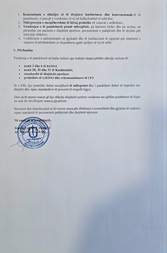 “Kjo vendime duhet të trajtohet me dinjitet dhe sipas standarteve të procesit të ligjeve të rregullta . thuhet në kërkesë.